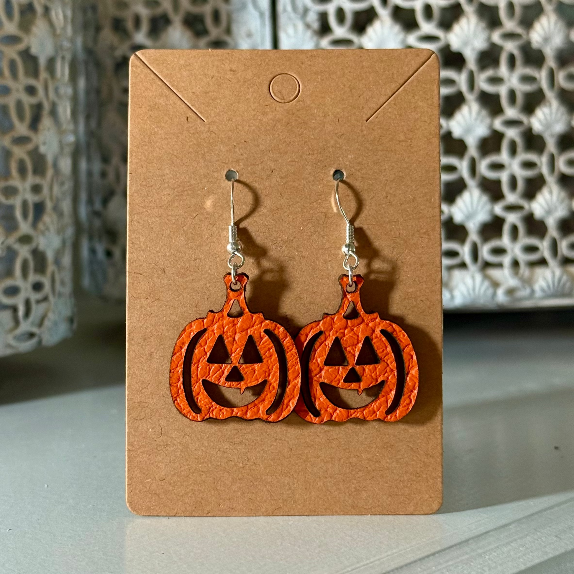 Leather Jack-O’-Lantern Earrings – Handmade Halloween Earrings